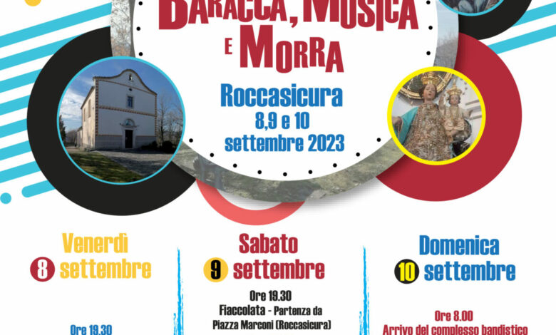 Si partirà venerdì 8 settembre, dalle 19,30 con l’apertura dello stand gastronomico e intrattenimento musicale con ‘I folli’, a seguire spazio alla musica dance con Dj Angelo Laurelli.