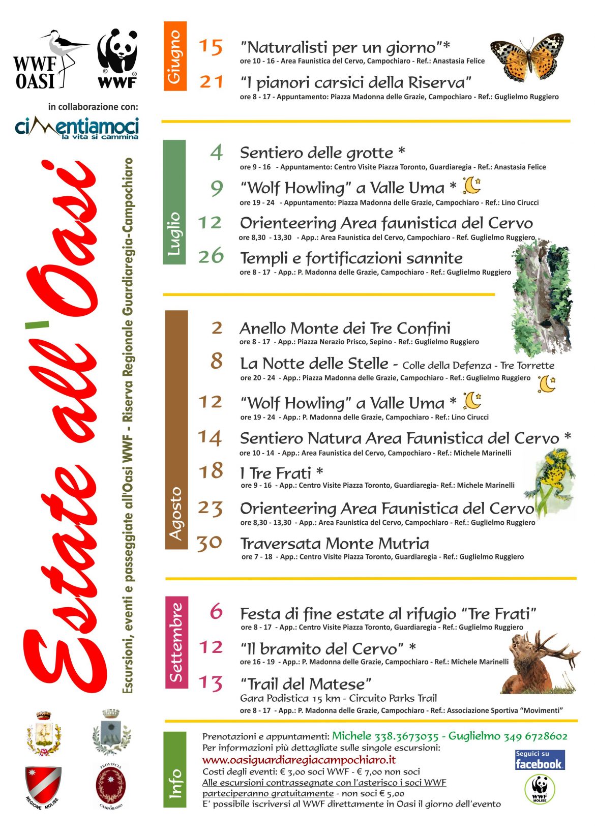 Il programma di “Estate all’Oasi 2015” andrà avanti per tutta la stagione estiva fino ai primi giorni di settembre per accontentare tutti i curiosi di natura che vogliono conoscere ed apprezzare questo lembo di natura molisana.