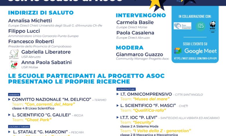 L’evento di domani, mercoledì 4 maggio 2022, dedicato proprio a celebrare il compleanno dell’Unione è incentrato sulla promozione del concetto di cittadinanza europea che si aggiunge quella italiana e che si potenzia anche attraverso un esercizio costante, come quello svolto dai 14 team abruzzesi e molisani, alle prese con un progetto nazionale divenuto europeo che prende il nome di A Scuola di Opencoesione.