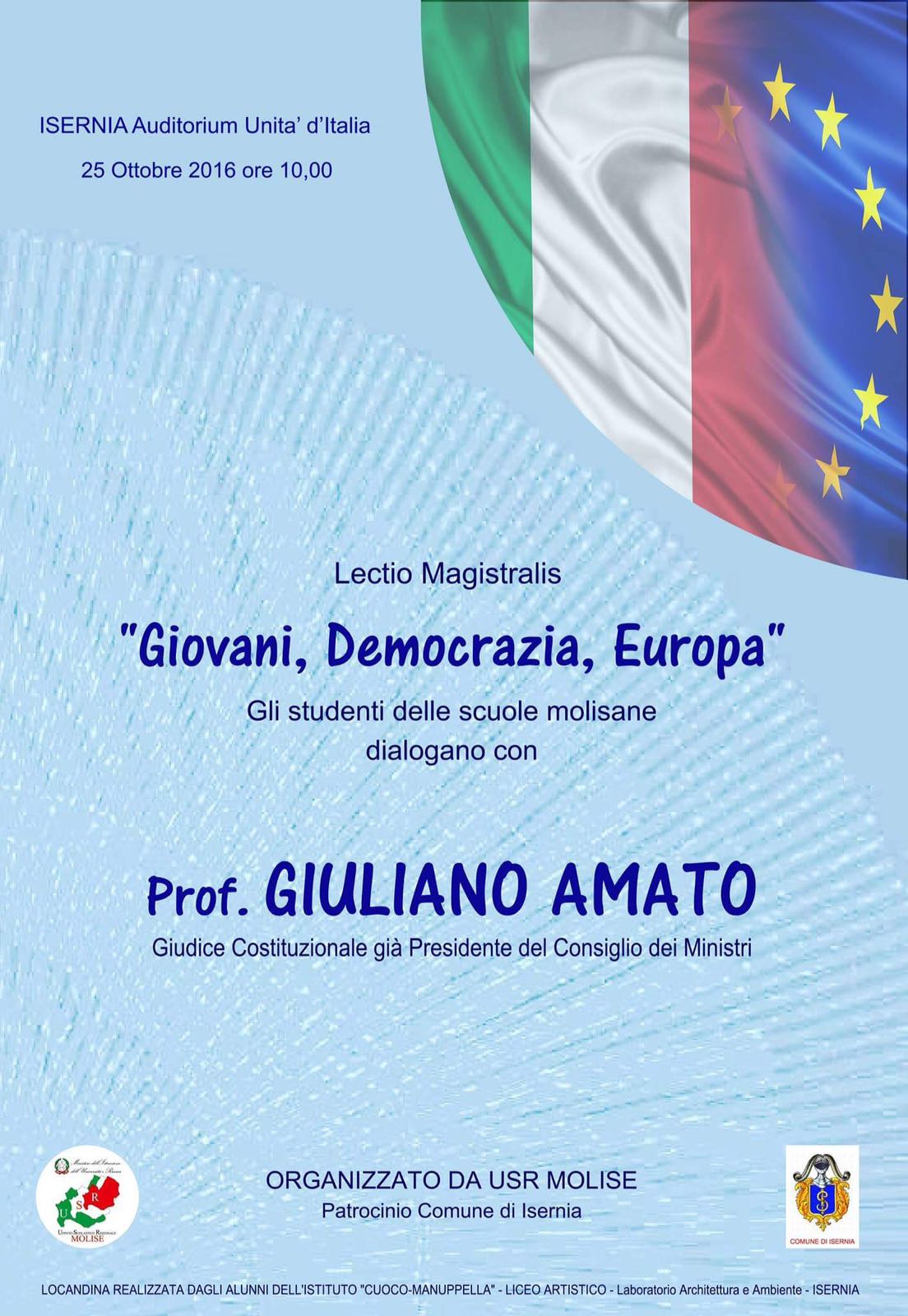 L’Ufficio Scolastico Regionale del Molise ricorda l’appuntamento con “Giovani, Democrazia, Europa” a cui parteciperà il Professor Giuliano Amato, Giudice Costituzionale già Presidente del Consiglio dei Ministri.