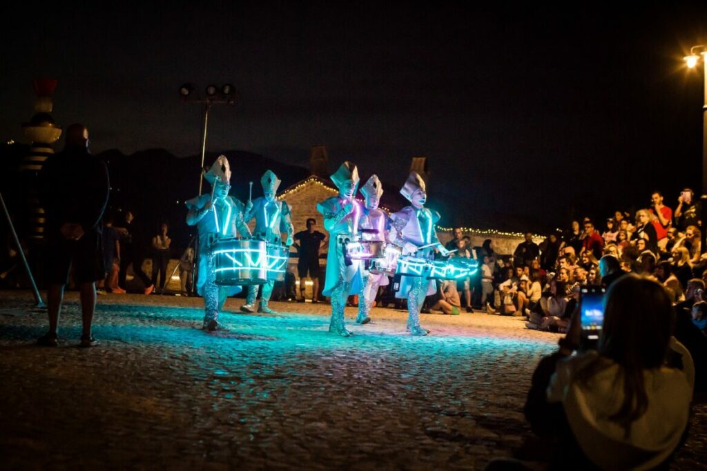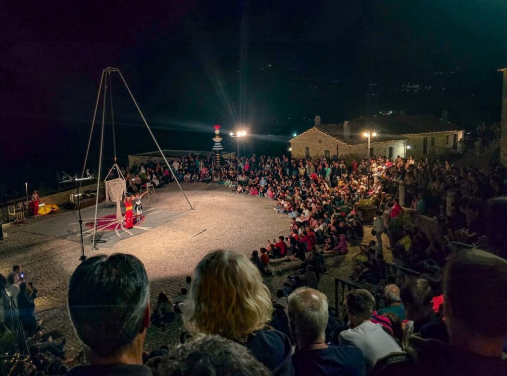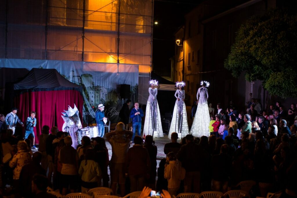 Castel del Giudice si è trasformato in un grande palcoscenico a cielo aperto accogliendo le performance di notevole impatto visivo e di forza fisica di artisti di calibro internazionale che hanno riscosso grande apprezzamento dal pubblico. Quest’anno il programma è stato particolarmente ricco e gli spettacoli hanno avuto inizio prima, alle 17.00, per andare incontro alle esigenze delle famiglie con bambini. Il pomeriggio ha accolto la spensieratezza dei più piccoli che si sono divertiti con i giochi di una volta costruiti in legno, con la dimostrazione di disegno dal vivo insieme al fumettista Marco Tarquini, con momenti di pura magia grazie alla danza eterea di trampolieri trasformati in meduse e farfalle luminose, con il ritmo irresistibile di percussionisti interattivi. La notte si è riempita di suggestione con esibizioni di danza aerea, di spettacoli con il fuoco e di acrobazie con equilibri al limite del possibile, recitazione coinvolgente e trasformismo sorprendente. Non sono mancati momenti di pura comicità ed improvvisazione con il coinvolgimento attivo del pubblico di tutte le età, a dimostrazione di come l’arte di strada sappia unire generazioni diverse nella condivisione della gioia e della multiculturalità.