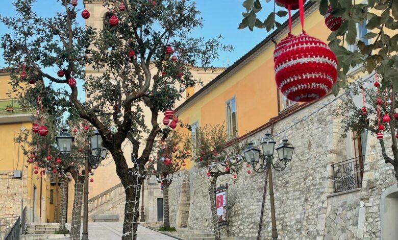 Natale all’uncinetto, a Mirabello 600 palline addobbano il centro cittadino