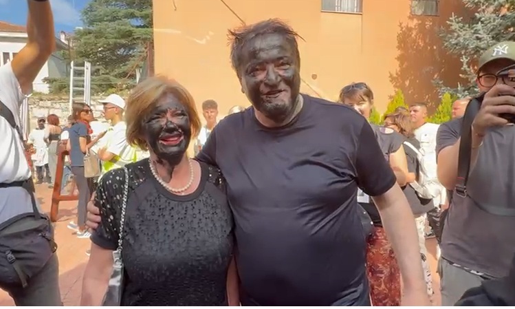 Uno dei momenti più attesi è stato il gesto simbolico del “diavolo” di Sant’Antonio Abate, interpretato da Italo Stivaletti, che ha sfiorato i volti del sindaco di Campobasso, Marialuisa Forte, e del Presidente della Giunta regionale del Molise, Francesco Roberti, tingendolo di nero, in un clima festoso.