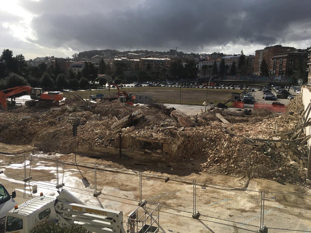 Scenario decisamente mutato al centro di Campobasso e, dopo le operazioni di abbattimento, durate dodici ore, gli operai incaricati dall’Impresa Di Biase stanno provvedendo allo smaltimento delle tonnellate di ferro e cemento depositati a terra.