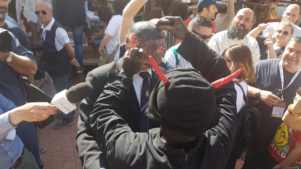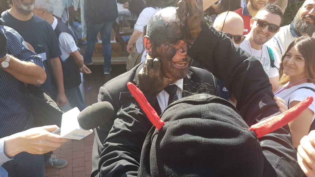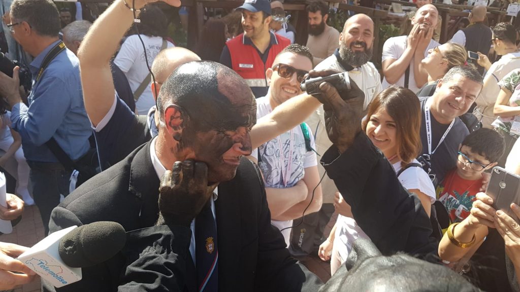 Nel frattempo i diavoli, tra i personaggi capaci di attirare i flash di tutti i presenti, si lasciano ricoprire il volto con la pece e per tutti sono linguacce e scarabocchi neri sul viso, sui vestiti. Qualcuno scappa e urla per non farsi sporcare: ma tutto è solo un gioco, condito dalla magia della tradizione che ogni anno si rinnova.