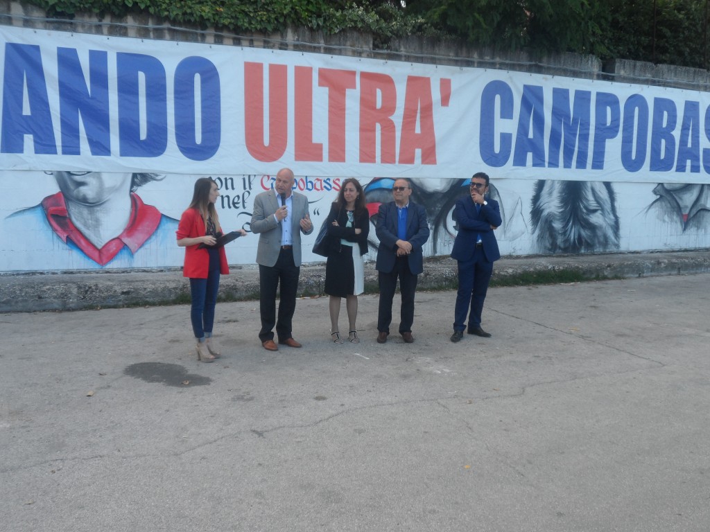 Sono intervenuti il sindaco Antonio Battista, gli assessori comunali Alessandra Salvatore e Salvatore Colagiovanni, il presidente della Provincia di Campobasso, Rosario De Matteis, il consigliere regionale Carmelo Parpiglia, gli ultimi due ex calciatore dei lupi, e il maestro d’arte Domenico Fratianni.