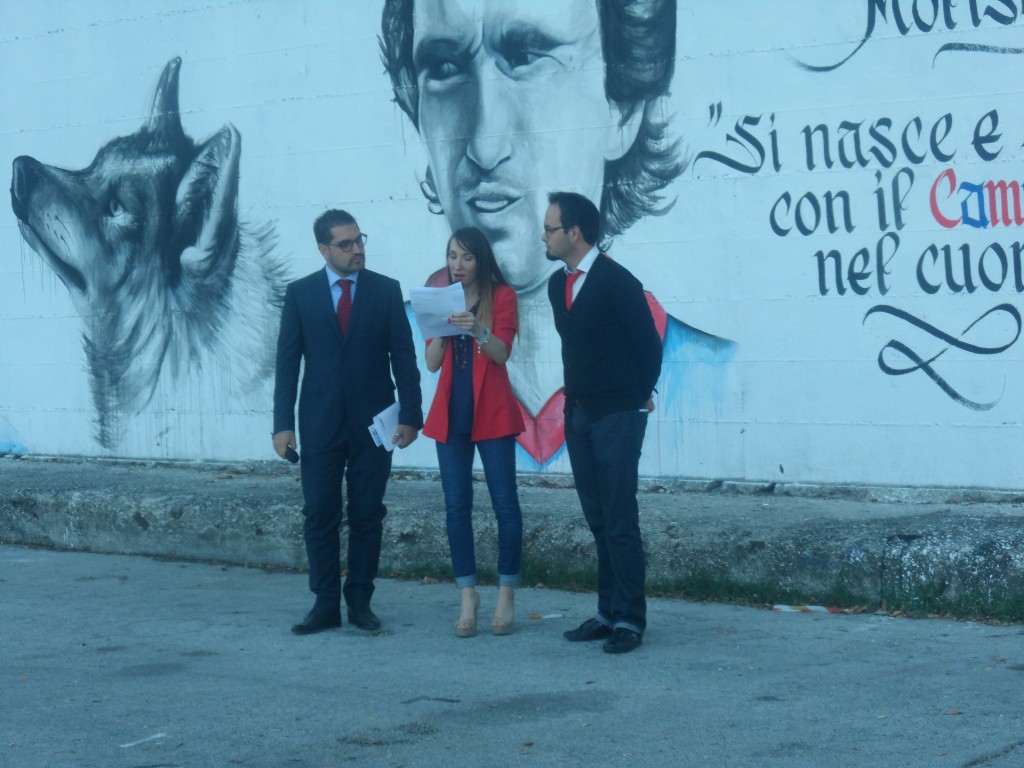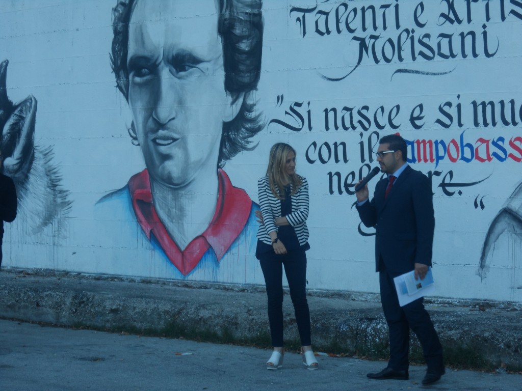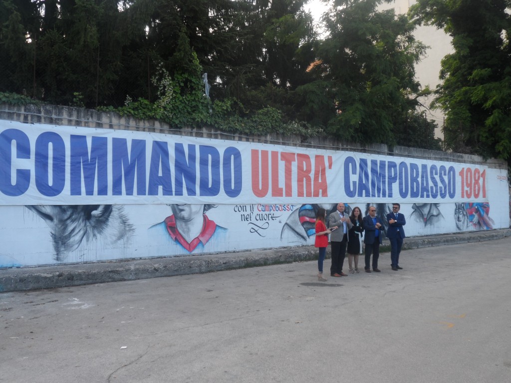 “Si nasce e si muore con il Campobasso nel cuore” è la frase che campeggia accanto ai volti dei cinque personaggi rossoblù. Il murales è stato scoperto nel corso di un pomeriggio che ha visto la presenza di tantissimi cittadini, che hanno apprezzato l’iniziativa promossa dall’Associazione Talenti e Artisti Molisani.