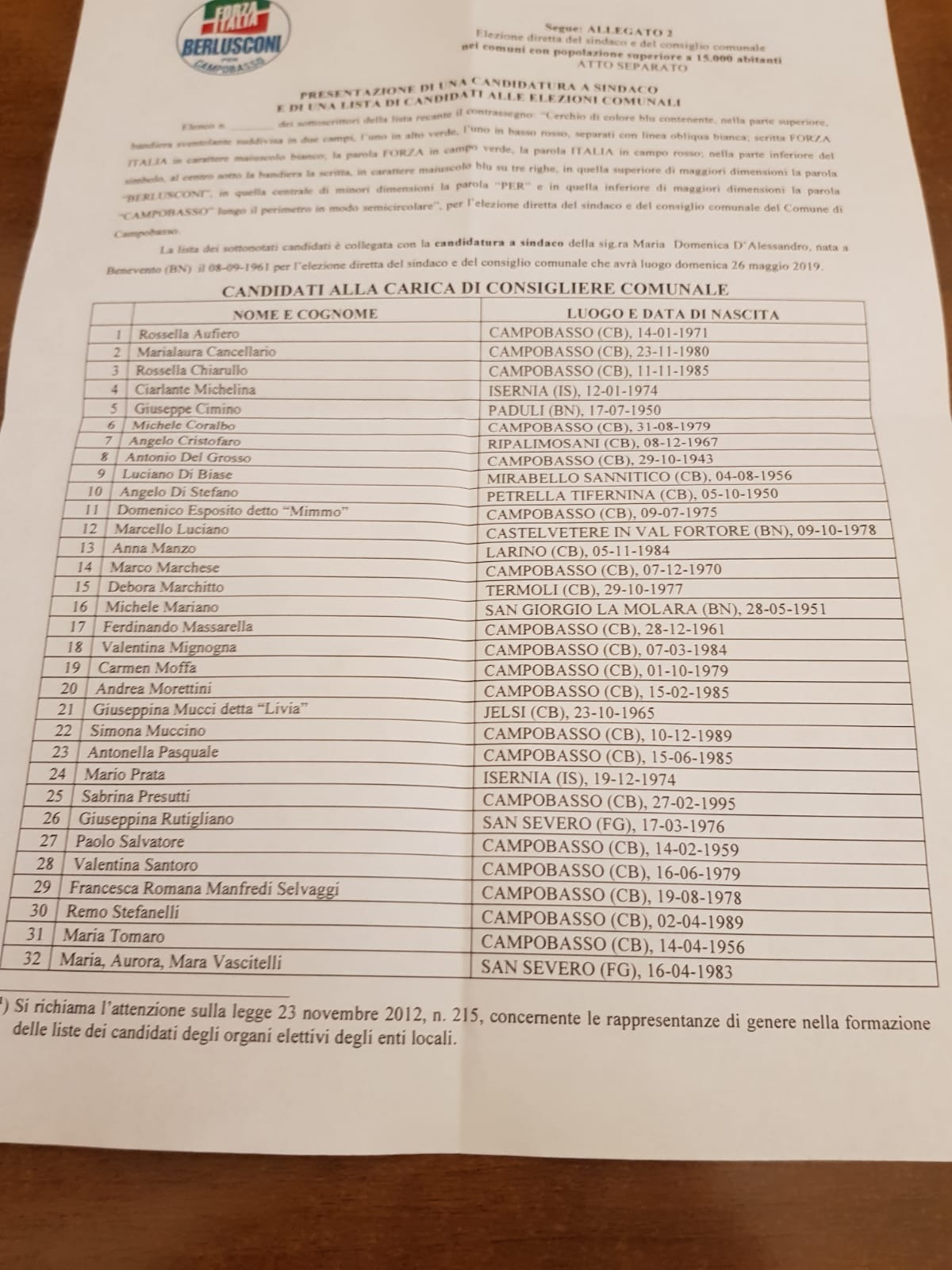 L’errore, come certifica la foto di CBlive, è stato a monte. Ovvero lo scorso sabato 27 aprile, giorno della presentazione delle liste, il nominativo della 32esima candidata di Forza Italia, era già sbagliato sull’atto separato consegnato all’ufficio elettorale del Comune.