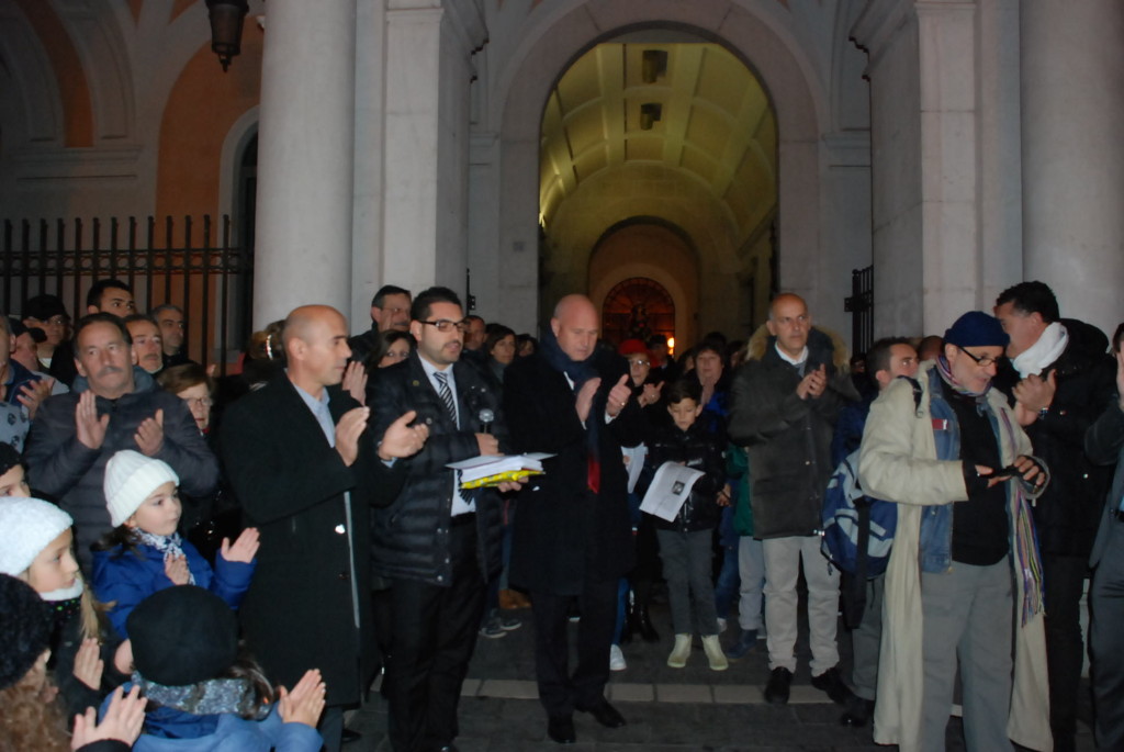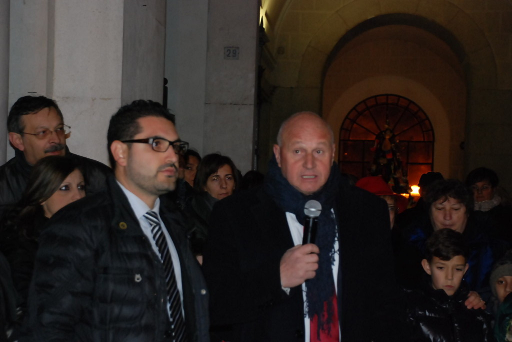 Dopo il saluto del sindaco, il momento più atteso: l’accensione delle luminarie tra la curiosità generale dei cittadini. Tutti con lo sguardo rivolto al cielo e, con l’accensione, il lungo applauso della cittadinanza, mentre prendeva vita il fuoco della speranza, iniziativa dei presidenti delle associazioni di quartiere, quale testimonianza dell’idea di comunità, col passaggio dal centro alla periferia.