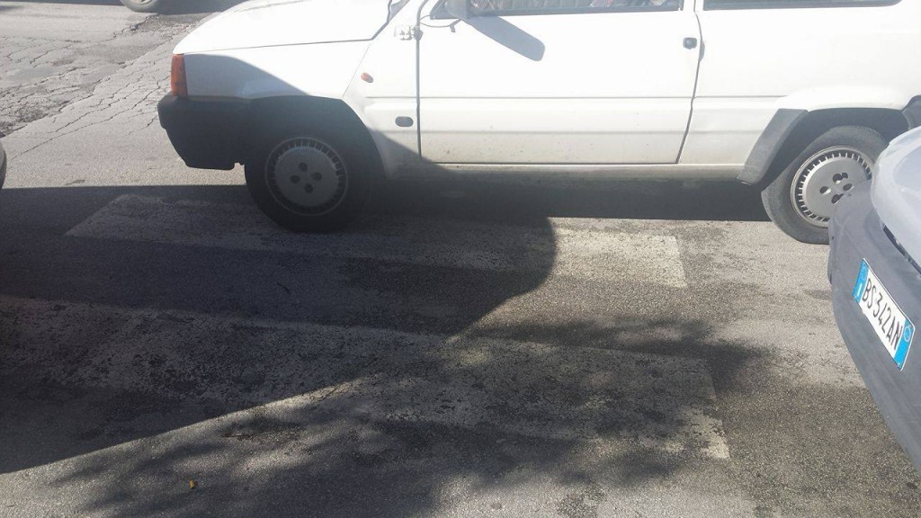Basta proseguire il giro dell’isolato a piedi per accorgersi che tale pratica incivile e irrispettosa del codice della strada, è diventata prassi ovunque nelle strade limitrofe poiché abbastanza lontane dal centro presidiato dalla Polizia Municipale. Oltre all’ostruzione degli attraversamenti per disabili, il parcheggio sulle strisce pedonali, e davanti ai cassonetti della spazzatura, è prassi consolidata e vizio diario.