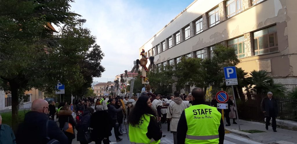 Sono da poco trascorse le 15.15 quando i Misteri vengono sistemati sotto la sede del Municipio, mentre nella chiesa della Libera, poco dopo, prende il via la celebrazione della Santa messa presieduta dall’arcivescovo Bregantini.
