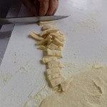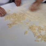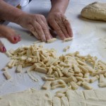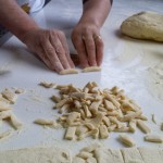 “Farina, sale e acqua – hanno spiegato alla platea intenta a osservare ogni importantissimo passaggio – e quando la pasta è contenuta, si fa riposare e poi si cava. Quando il cavatello sale su, sono pronti”. Sembra facile a dirsi, ma l’arte di saper impastare, di saper cogliere la consistenza giusta e quella finale di ‘cavare’, non è cosa da poco. E, ancor più rara, è la contagiosa allegria che queste persone, queste biblioteche viventi, riescono a infondere ovunque vadano. Mentre si assiste al lavoro di manualità, le voci si ricorrono, si accavallano, si interrompono per fare posto a battute, ricordi passati e risate fragorose. L’arte di saper prendere ogni giornata di pioggia nel verso giusto, di saper coinvolgere giovani e meno giovani, di volersi riunire con la scusa di ‘insegnare a cucinare’: quella è l’arte più ambita e, no, quella non si impara. La si ha.