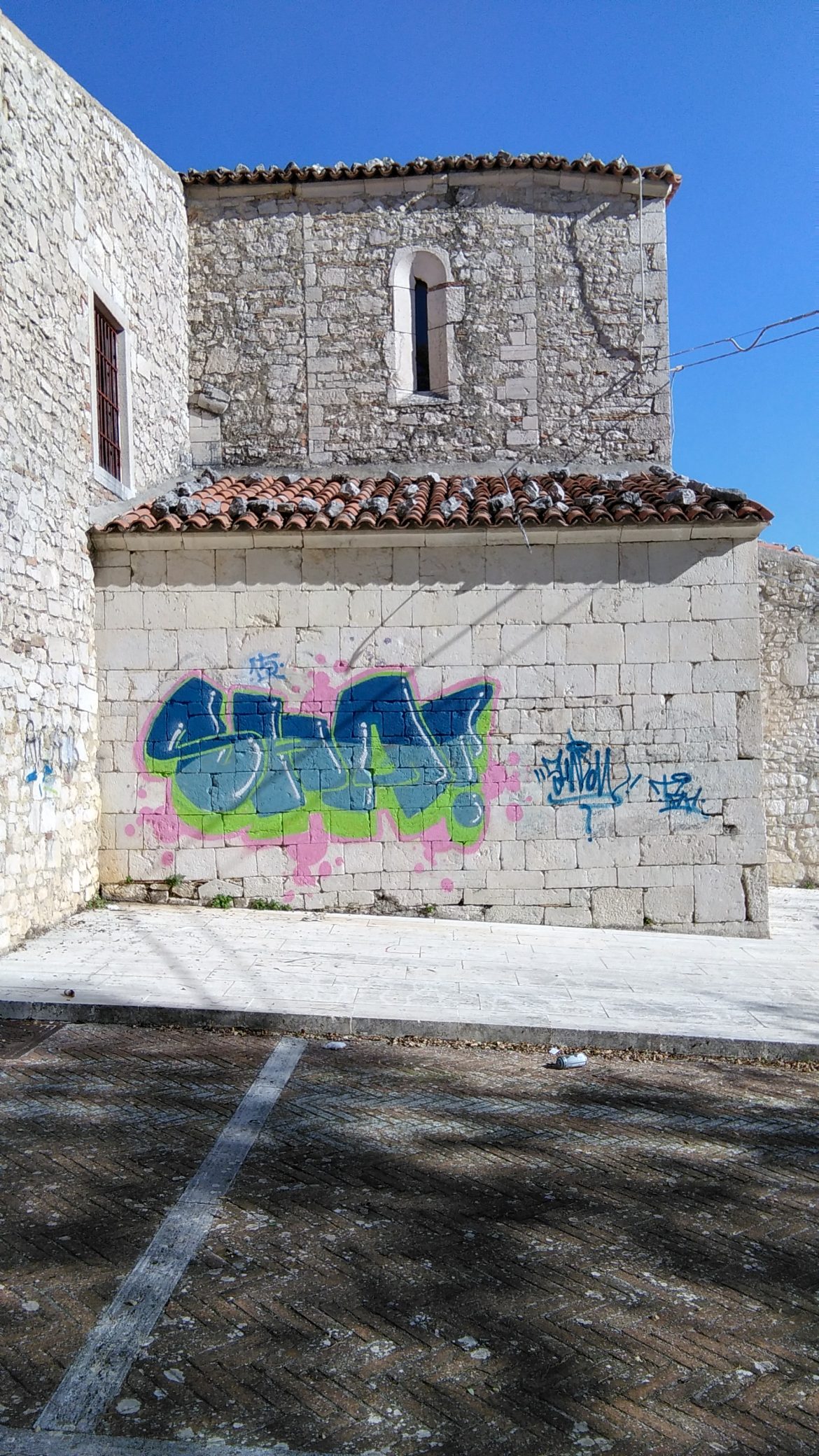 La chiesa di San Giorgio martire, risalente a un periodo tra l’undicesimo e il tredicesimo secolo, situata nella parte alta di Campobasso, insieme alla vicina Chiesa di San Bartolomeo e alla Torre Terzano nella sommità della collina Monforte, viene continuamente imbrattata da graffiti, tag e simboli di writers che, spesso e impunemente, deturpano edifici storici e pubblici con conseguenti atti di vandalismo.