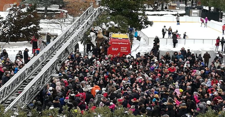 La neve non impedisce l’arrivo della Befana. Pioggia di caramelle, divertimento e sorrisi in Piazza Vittorio Emanuele II