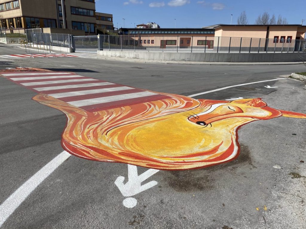 Grazie al sostegno del Comune di Campobasso, tre artiste dell’Associazione Malatesta, da un’idea dell’assessore Simone Cretella, sono intervenute su quattro attraversamenti pedonali: via S. Antonio dei Lazzari (Istituto Colozza), via Friuli (Istituto Jovine), via Leopardi (Istituto Don Milani) e via Berlinguer (Istituto D’Ovidio), con l’intento di rendere più attrattivi i passaggi pedonali ai bambini e con l’obiettivo di evidenziare la segnaletica orizzontale, nell’ottica di sensibilizzare gli automobilisti sul tema della sicurezza stradale.