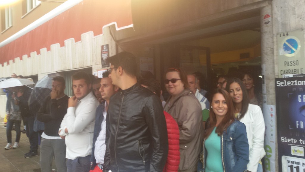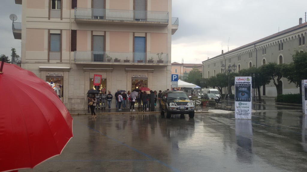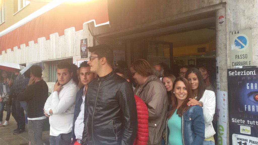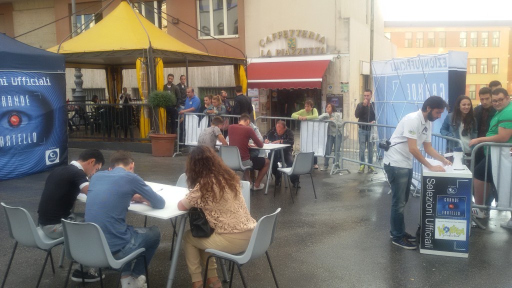 In tanti si sono presentati nel pomeriggio odierno, venerdì 11 settembre 2015, alle selezioni per il Grande Fratello. Nemmeno la pioggia è riuscita a fermare l’esercito di aspiranti concorrenti della casa più spiata d’Italia. Prima tutti a ripararsi nel bar adiacente la location del casting o sotto i balconi di Piazza della Vittoria.