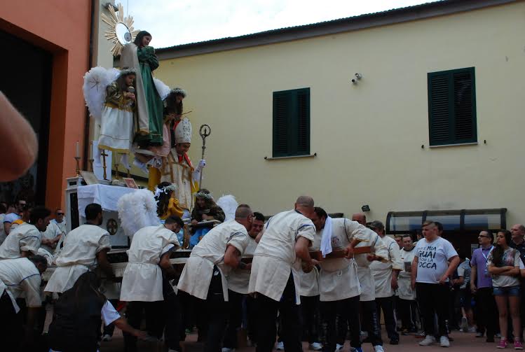 Il Padre Nostro e un lungo applauso hanno salutato gli Ingegni del Di Zinno, mentre la festa prosegue con la fiera e il concerto di Roberto Vecchioni, chiamato a chiudere il Corpus Domini 2015, il primo organizzato dall’amministrazione Battista.