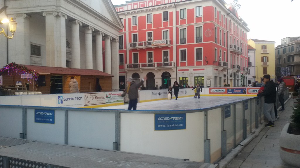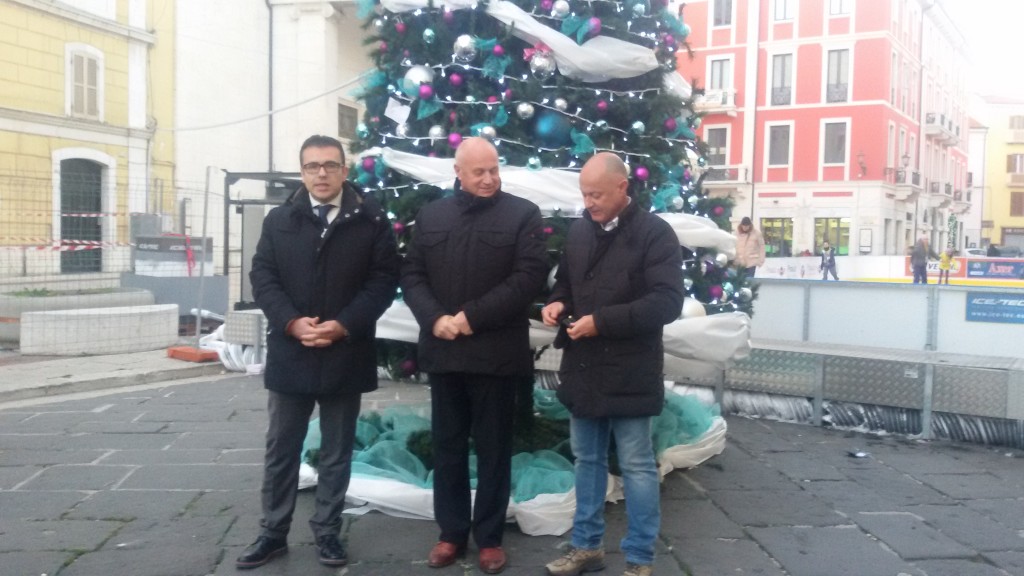 Inaugurazione questo pomeriggio, venerdì 18 dicembre, per la pista di pattinaggio in Piazza Pepe a Campobasso. Presenti il sindaco, Antonio Battista, l’assessore Salvatore Colagiovanni e il consigliere Francesco De Bernardo. Un pensiero di auguri per tutta la cittadinanza quello che il primo cittadino ha voluto lasciare sull’albero di Natale adiacente alla pista, dove già in tanti erano i ragazzi e i bambini che si divertivano.