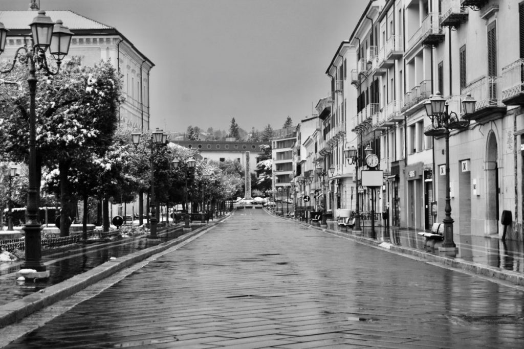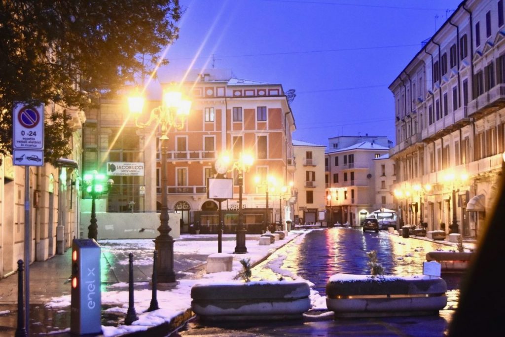 Campobasso, nella serata di martedì 24 marzo 2020, è apparsa in tutta la sua bellezza e peculiarità. Strade deserte, con i cittadini particolarmente responsabili nel seguire le indicazioni per contenere il contagio del Covid-19. La neve a fare da scenario a una città vuota, ma che grazie alle strade deserte è apparsa in tutta la sua bellezza.