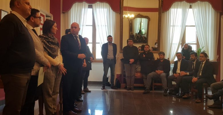 Liberato Teberino, presidente dell’associazione Misteri e Tradizioni, che con la sua famiglia da 50 anni cura e gestisce l’uscita degli Ingegni del Di Zinno nel giorno del Corpus Domini, arriva nella sala Giunta di Palazzo San Giorgio a conferenza stampa già iniziata. Sotto i riflettori ci sono gli eventi promossi dal Comune di Campobasso in occasione del Natale 2018 e dell’anniversario dei 300 anni dalla nascita del celebre padre dei Misteri.