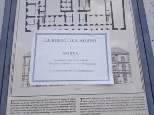 Intanto, da qualche tempo, in città e nei pressi di Palazzo San Giorgio sono comparsi alcuni manifesti abusivi con i quali si annuncia la morte della Biblioteca Albino.