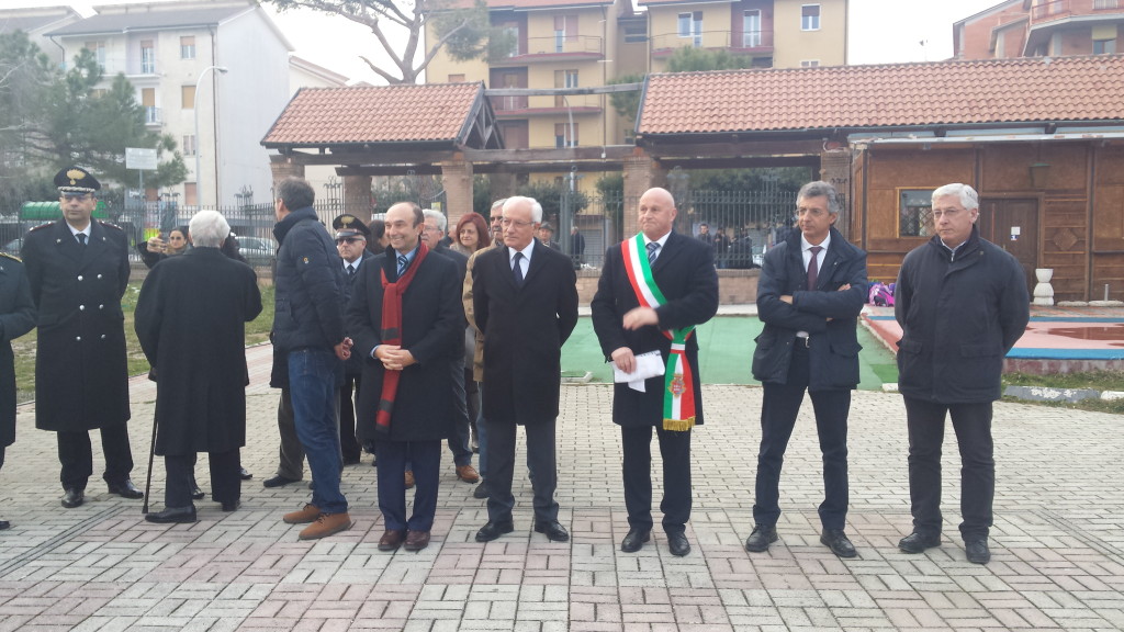 Il primo cittadino, Antonio Battista, ha voluto prima di tutto salutare e ringraziare i bambini della quinta classe elementare ‘Montini’ e la preside Agata Antonelli per la disponibilità mostrata nel voler partecipare attivamente con uno scritto che durante la cerimonia commemorativa è stato letto dagli alunni in rappresentanza dell’intera scuola. “A Campobasso mancava questo tipo di ricordo – le parole del sindaco – e questa è la nostra maniera di tenerlo vivo. Lo facciamo con l’apposizione di queste due targhe proprio in un parco dove tutti i giorni giocano i bambini e si incontrano i genitori. Gli stessi bambini a cui settant’anni fa è stata strappata la vita, l’innocenza e il futuro. L’iniziativa – continua Battista – parte con l’interesse del Consiglio comunale, trova riscontro all’interno della Commissione consiliare Cultura, per poi diventare atto ufficiale grazie anche all’interessamento della Prefettura. Questo – conclude – è anche un periodo storico particolare per l’Europa, che in queste ore sta vivendo uno dei momenti più drammatici e negativi della propria storia rifiutando situazioni che in qualche modo sono paragonabili a quelli avvenuti anni fa.”