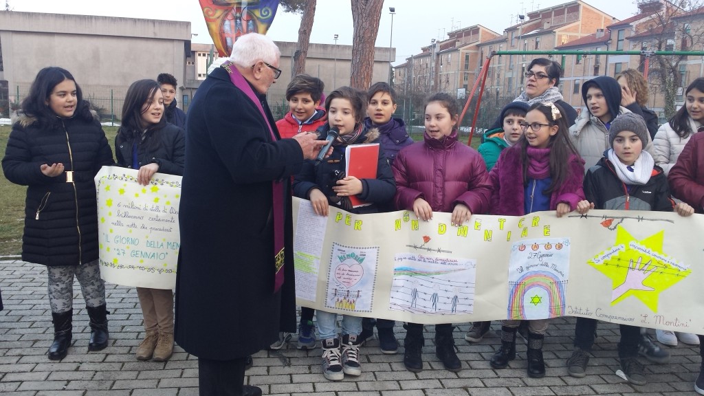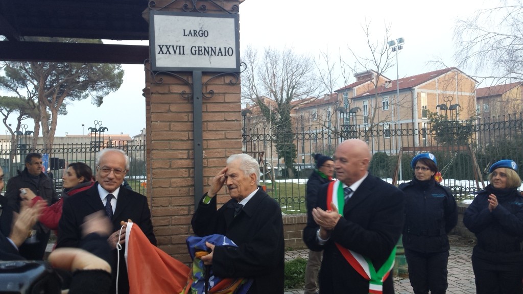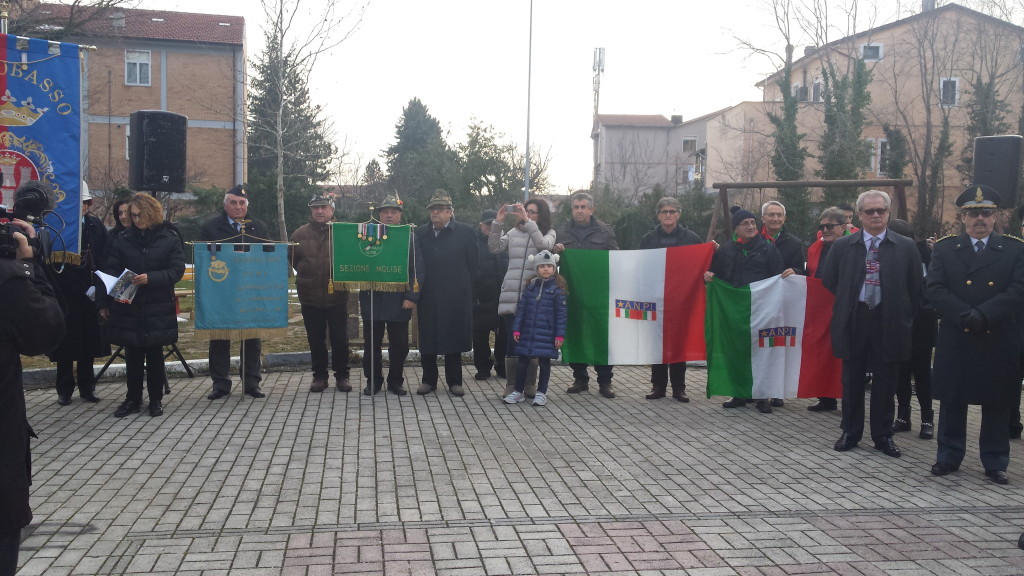Il parco giochi di via XXIV Maggio a Campobasso e la via antistante la scuola elementare Montini, da questo pomeriggio mercoledì 27 gennaio, sono diventati “Parco della Memoria” e “Largo XXVII Gennaio”. Così l’amministrazione del Comune di Campobasso, affiancata dalle autorità militari e civili, alla presenza delle associazioni combattentistiche e partigiane, insieme ad alcuni alunni della scuola Montini, ha voluto celebrare l’apposizione delle targhe in ricordo di una delle pagine più nere che la storia del mondo abbia mai conosciuto. Per non dimenticare mai.