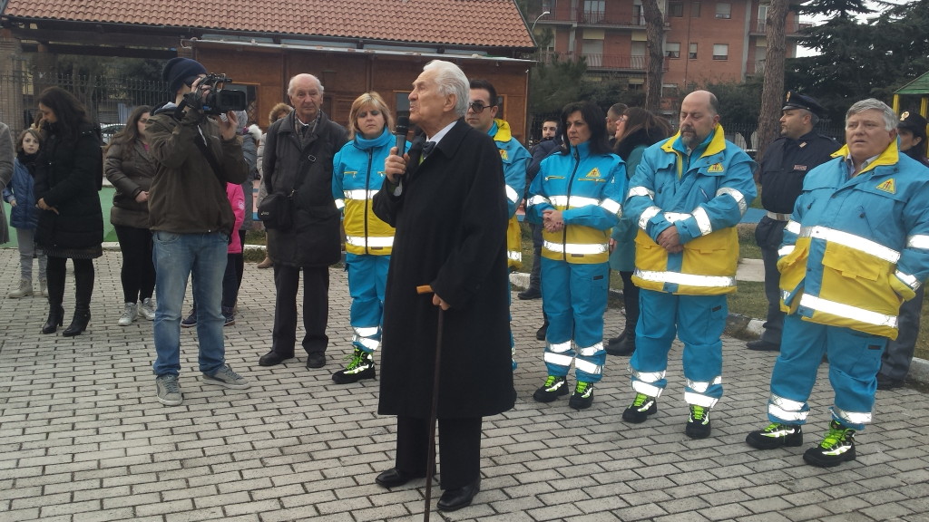 Momenti di forte commozione sono poi seguiti quando a parlare ai presenti è stato un reduce di guerra, Giovanni Tucci, 90anni, ex funzionario regionale in pensione. Commosso e con la voce spezzata dall’emozione, è tornato indietro con la memoria e ha voluto regalare a tutti il dono di un’esperienza, la sua, che vale più di ogni libro di storia. “Di tutte le pene che si sono consumate – ha raccontato – quello che più mi ha fatto impressione è stato vedere la montagna di scarpe. Scarpe di tutte le fogge. Ma quello che mai potrò dimenticare sono le migliaia di sandaletti dei bambini lì accatastati. Sandaletti portati da esseri indifesi, da bimbi che avevano tutto il diritto di vivere una vita serena. Esseri senza macchia che furono oggetto del più grande oltraggio che l’umanità potesse compiere. Mai più odio”.