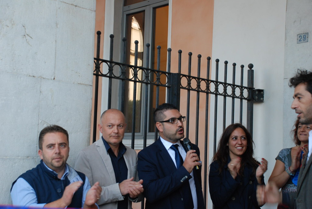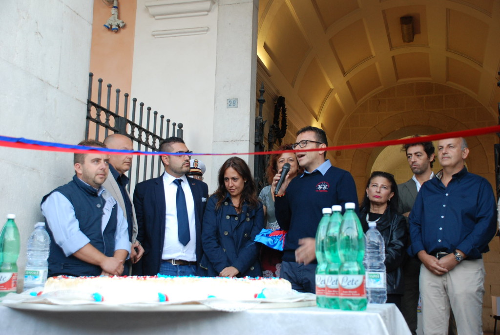 Il taglio del nastro e della torta, da parte degli assessori Bibiana Chierchia, Emma de Capoa, Alessandra Salvatore e del consigliere comunale Giovanna Viola. Diversi gli esponenti della maggioranza di centrosinistra presenti nell’atrio di Palazzo San Giorgio, che hanno inaugurato l’evento: Francesco De Bernardo, Antonio Molinari, Gianluca Maroncelli, Giose Trivisonno.