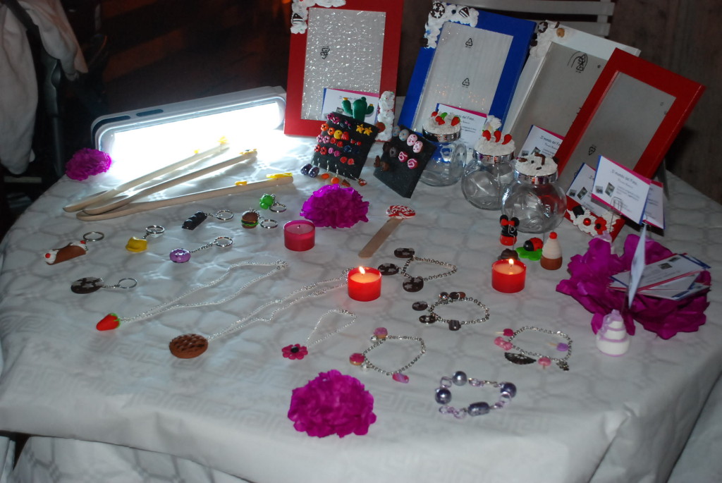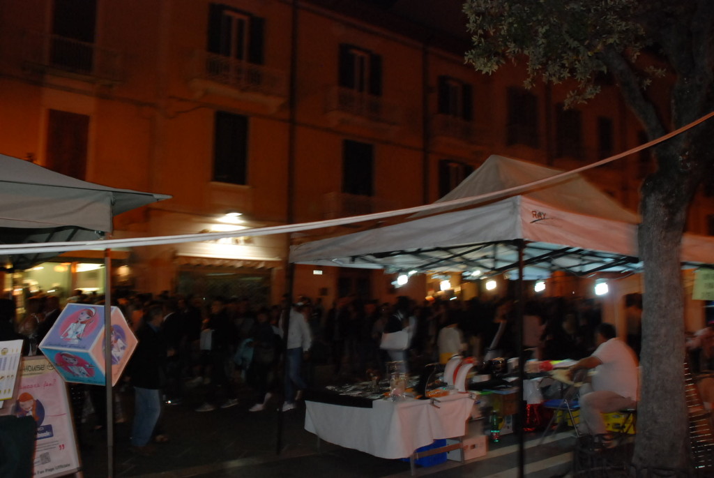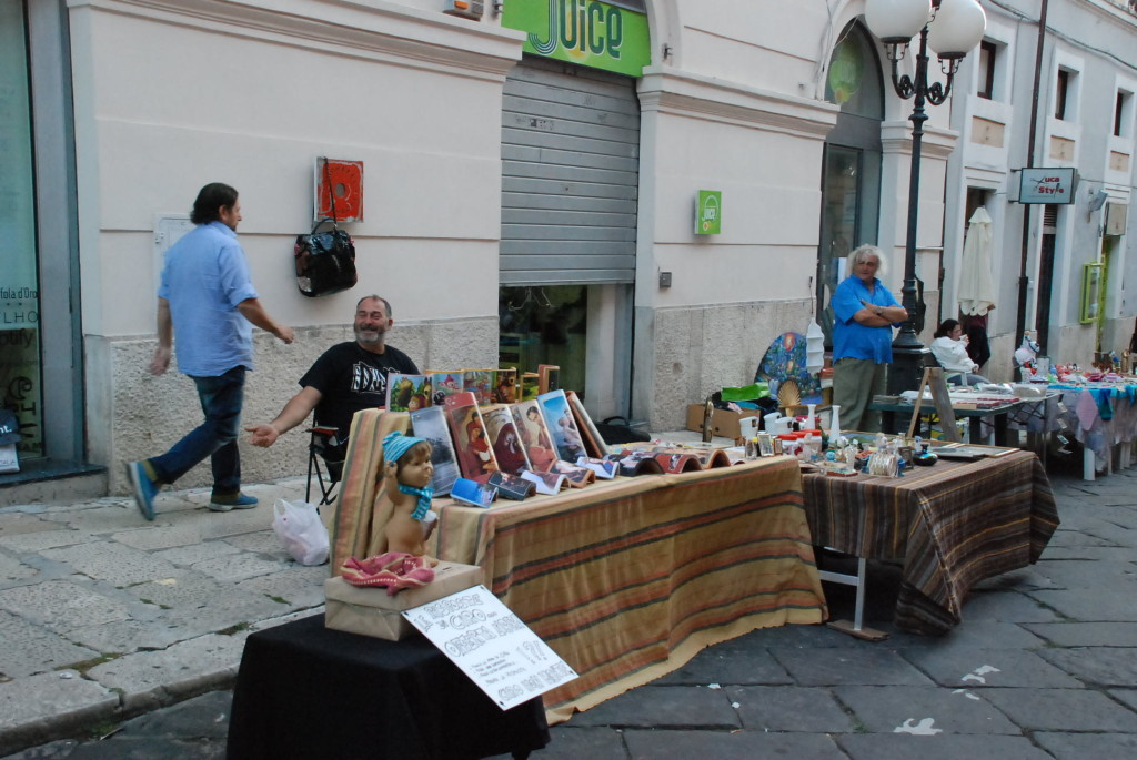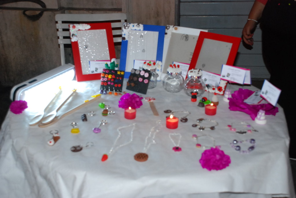 ore 22.00: in via Palombo l’attenzione dei passanti è attirata da numerosi oggetti in fimo realizzati per passione da Veronica Santucci. Si spazia dalle bomboniere ai bijoux.