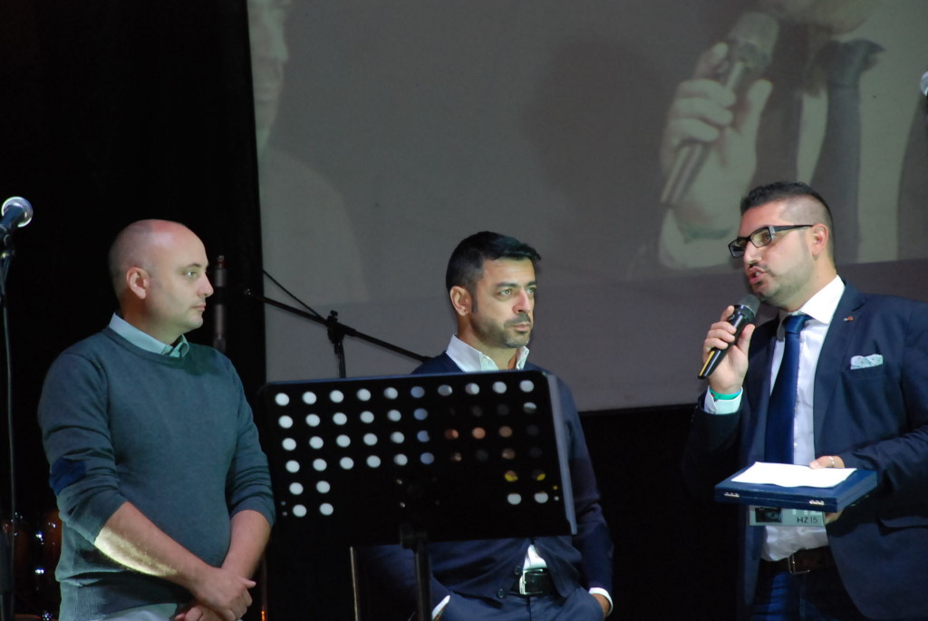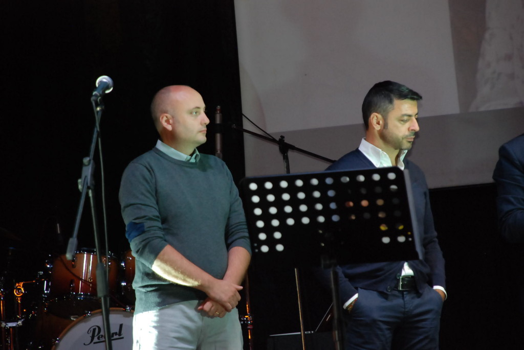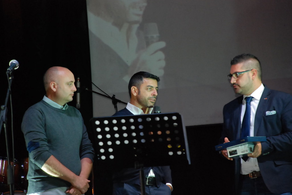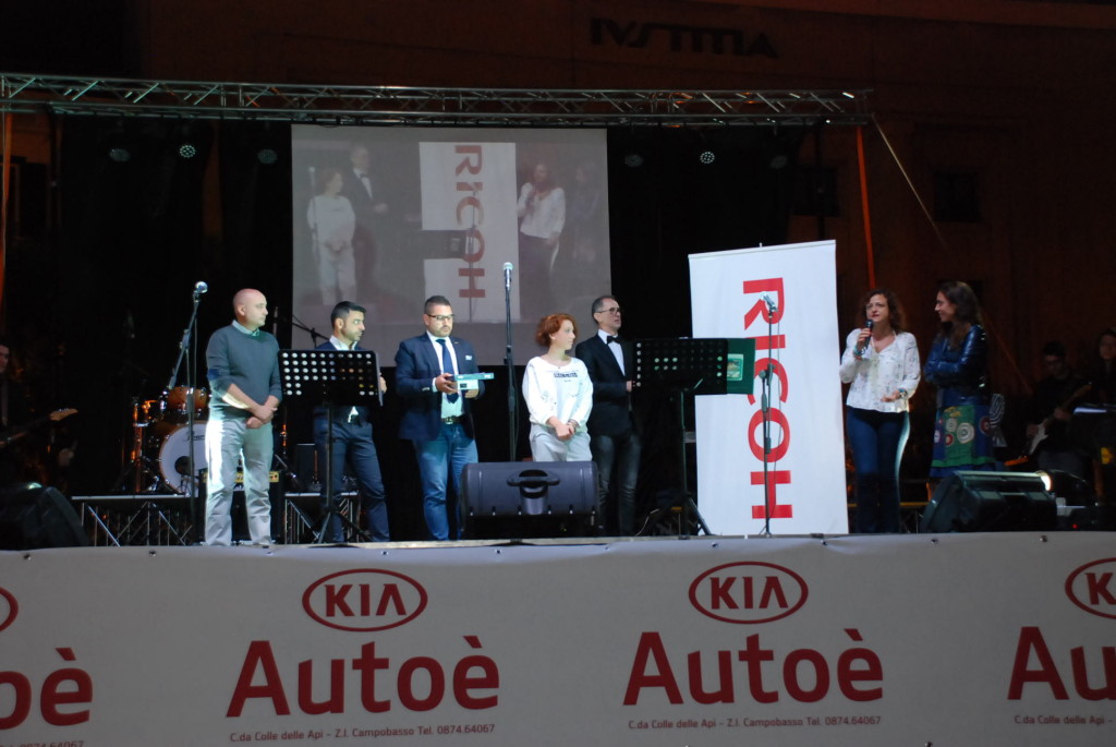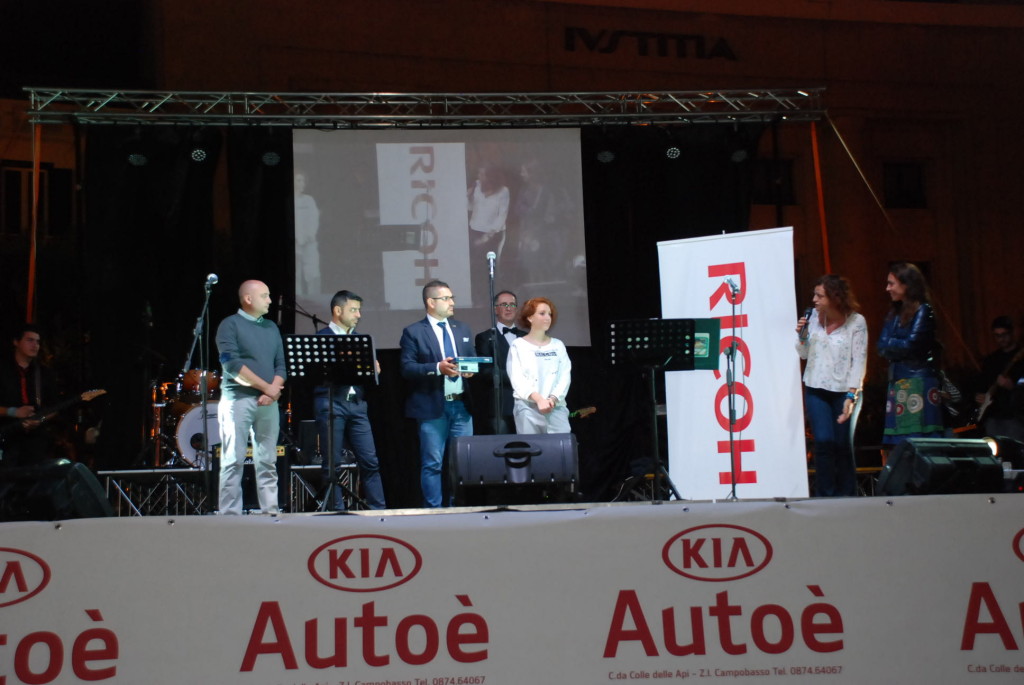 ore 00,05: il sindaco Antonio Battista, sul palco di Piazza della Vittoria, insieme con Lello Musella, saluta e ringrazia tutti per la bellissima serata, premiando Carmine Brasiliano, primo nel concorso fotografico dal tema ‘Campobasso, città della pace’.