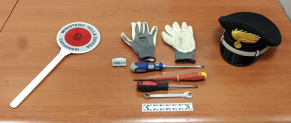 Gli stessi, al momento del controllo, destavano sospetto anche per l’apparente stato di agitazione nonché per le circostanze di tempo e luogo, tanto da spingere gli operanti a procedere a perquisizioni personali e veicolare d’iniziativa, rinvenendo all’interno dell’abitacolo del mezzo un paio di guanti da lavoro in stoffa e gomma, tre cacciavite di cui uno modificato, una chiave inglese ed un connettore OBD per collegamento a centraline elettroniche di veicoli a motore.