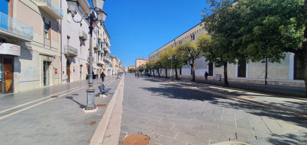 Poche le persone che passeggiano lungo Corso Vittorio Emanuele, ancor di meno in Piazza Municipio. Il parcheggio della Piscina Comunale è deserto, così come sulla Tangenziale di Vazzieri, all’ingresso della città, sono pochissime le auto che transitano, sia in entrata che in uscita.