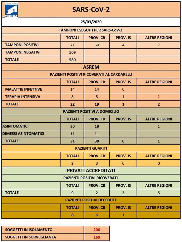 I guariti di mercoledì 25 marzo sono 1.036 per un totale di 9.362 dall’inizio dell’epidemia.