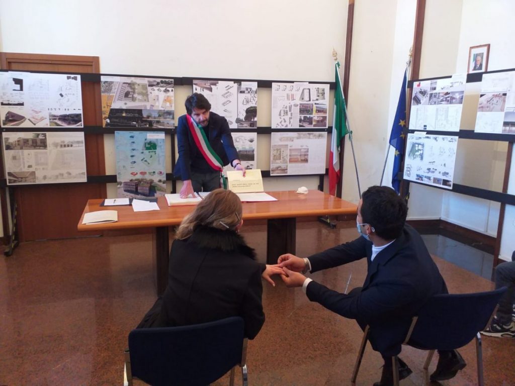 Primo matrimonio a Campobasso durante la pandemia. Nella Saletta Civica di Palazzo San Giorgio questa mattina, sabato 4 aprile 2020, è stato celebrato, dal sindaco Roberto Gravina, un matrimonio civile, che ha visto la sola presenza degli sposi e dei due testimoni.