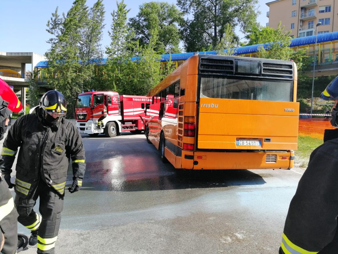 Vigili del Fuoco in azione al Terminal di Campobasso, dove un autobus cittadino della Seac ha preso fuoco.