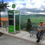 Prendiamo una obsoleta cabina a gettoni, di quelle che molto spesso si trovano nei paesini e sono solo vecchio arredo urbano. Coloriamola di verde e mettiamoci il simbolo di Whats app, l’applicazione di messaggistica istantanea più in voga del momento. Prendiamo un piccolo bar di paese e copriamo i tavolini con una tovaglia con su scritto ‘Google’. Un apecross colorata di celeste con scritto ‘We Transfer’. Una panchina blu, dove campeggia il simbolo di Twitter, luogo si ‘cinguettìo’ tra gli abitanti del paese. Così Civitacampomarano, in occasione del Festival della Street Art, è diventata un’opera d’arte vivente che unisce tradizione e tecnologia, ben evidente nel video ‘Web o.o’.