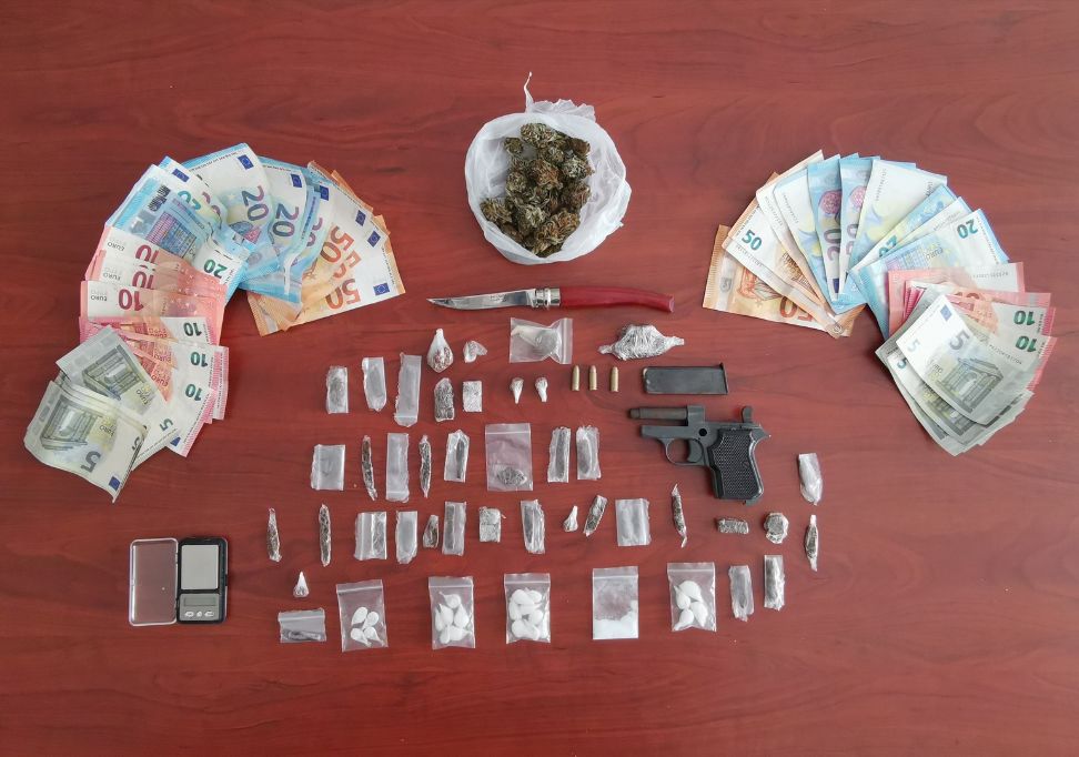 Nel corso di mirati servizi di controllo del territorio, infatti, gli uomini dell’Arma hanno effettuato una perquisizione domiciliare d’iniziativa presso un’abitazione, rinvenendovi all’interno un significativo quantitativo di sostanze stupefacenti (8 grammi di cocaina, 8 di eroina, 25 di marijuana e 55 di hashish) già in parte frazionate per lo spaccio, un bilancino elettronico di precisione, materiale vario per il confezionamento della droga, una pistola calibro 6,35 mancante della culatta-otturatore e sprovvista di marca e matricola, 3 cartucce del medesimo calibro, un coltello a serramanico avente la lama con tracce di hashish ed anche la somma di 1.030,00 euro in banconote di vario taglio, verosimile provento di pregressa attività di spaccio.