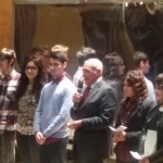 Il Presidente del Senato Pietro Grasso sul palco del Savoia insieme algli studenti