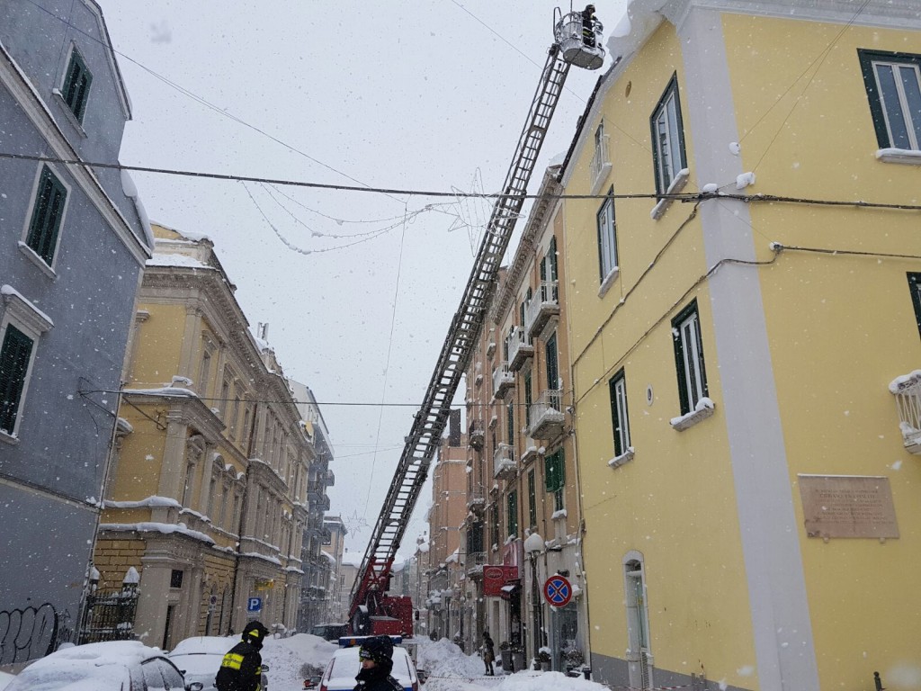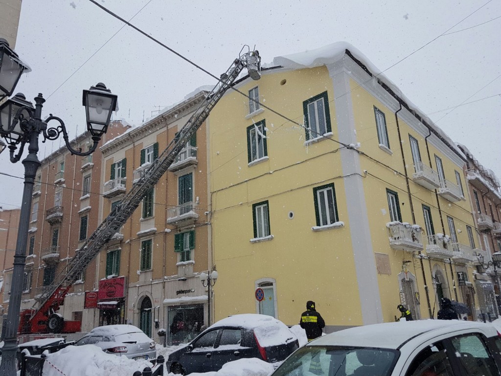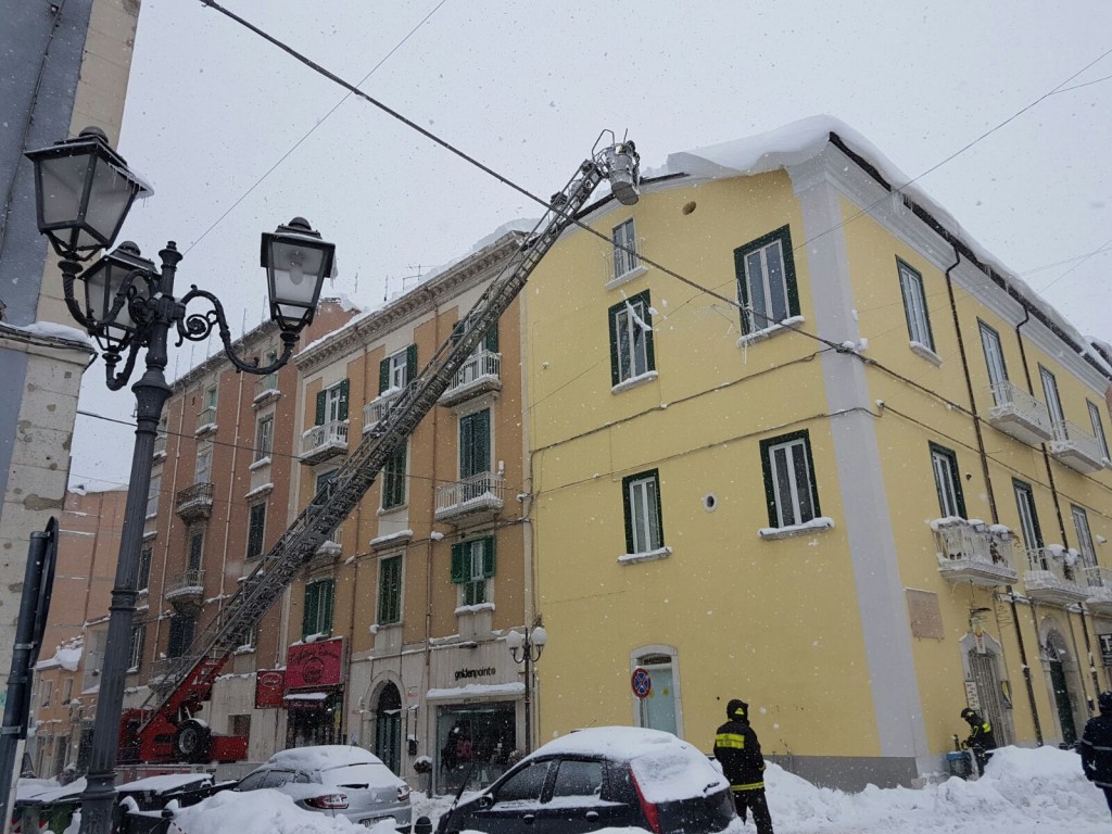 Gli operai della municipalizzata del Comune stanno lavorando per tenere pulite le strade del centro e della periferia e i principali marciapiedi. Ma si continua a lavorare anche per mettere in sicurezza pedoni e vetture attraverso l’eliminazione dai cornicioni dei palazzi delle stalattiti di ghiaccio e dei cumuli di neve. Ai mezzi in dotazione ai Vigili del Fuoco, a cui sono andatii i ringraziamenti dell’amministrazione del capoluogo “per il lavoro che stanno effettuando”, si aggiungono quelli messi a disposizione dal Comune: due elevatori con cestello che permetteranno di effettuare maggiori interventi nel capoluogo.