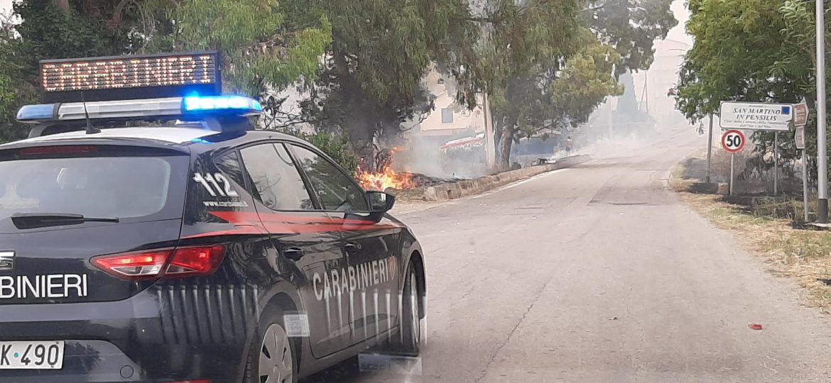 Durante le operazioni di spegnimento delle fiamme, i Carabinieri pattugliavano il territorio interessato segnalando ai Vigili del Fuoco i punti nei quali le fiamme stavano dilagando.