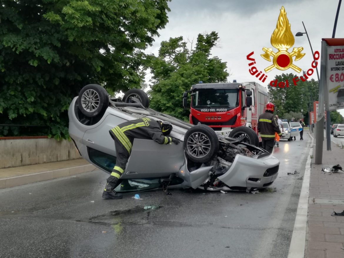 Rocambolesco incidente nel pomeriggio di oggi, 29 maggio 2020, all’altezza della rotonda di San Giovannello, dove un’auto si è ribaltata per cause da accertare.