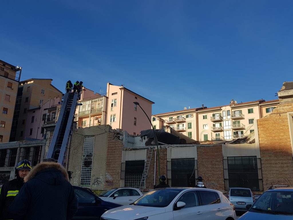 Intanto, il sindaco Antonio Battista ha firmato un’ordinanza diretta al proprietario del capannone ex Enel, l’Impresa Di Biase. Documento che ordina la messa in sicurezza dell’edificio e dell’area interessata dal crollo. Nelle prossime ore saranno effettuate, dai tecnici di parte e da quelli degli enti interessati, le valutazioni utili a stabilire il futuro dell’immobile.