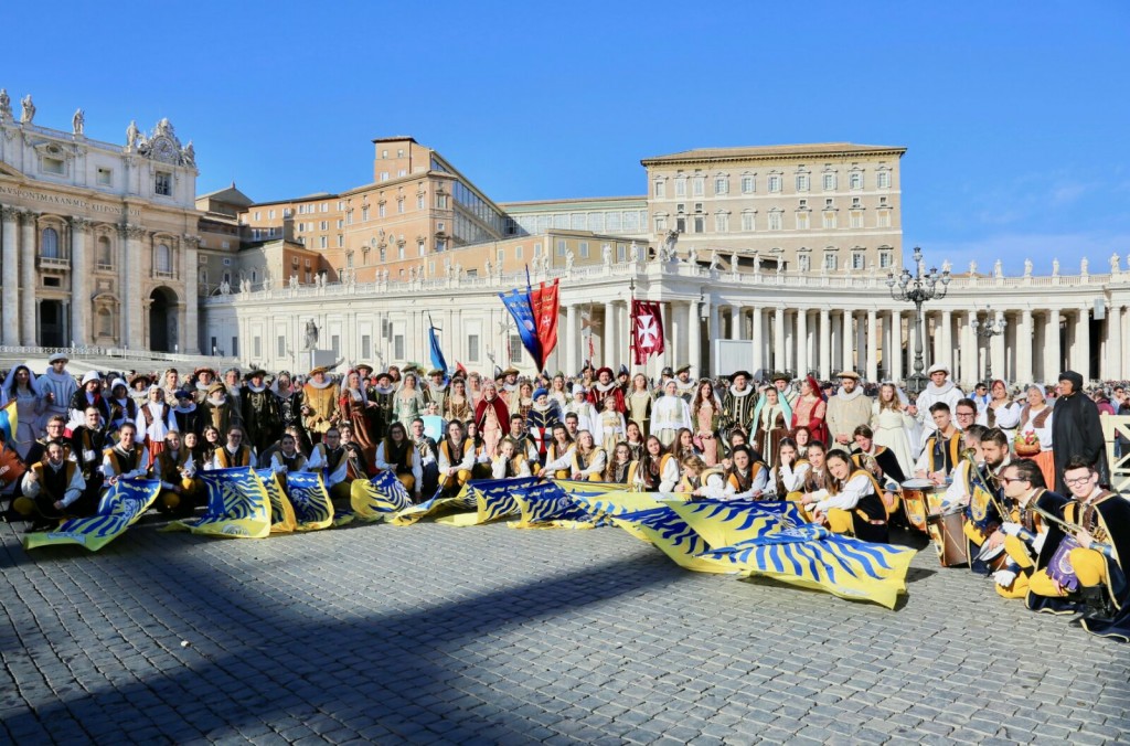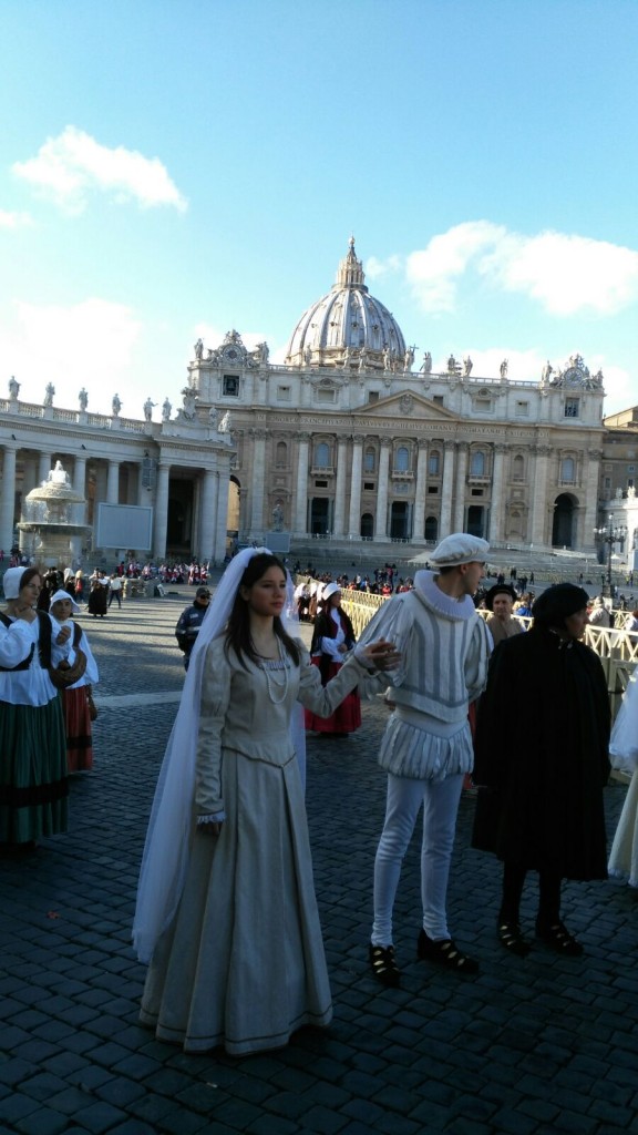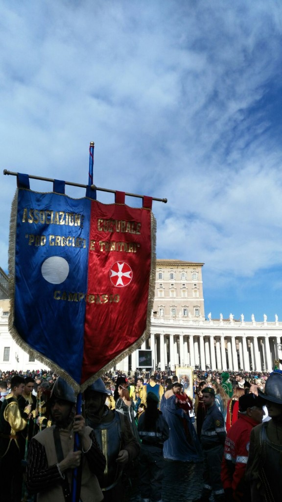 E Campobasso ed il Molise hanno risposto, con entusiasmo e serietà, all’invito recandosi in Piazza San Pietro con un corteo storico di oltre cento figuranti in costume d’epoca rinascimentale, la cui ‘sfilata’ è stata curata nei minimi dettagli da oltre un mese. Tra i figuranti, i paggetti che hanno portato in dono un quadro raffigurante il valore della famiglia, anche i componenti dalla Misericordie d’Italia e dell’Associazione CONGEAV Guardie Ecologiche che si sono occupati sia della sicurezza integrata safety, che alla tutela degli animali che facevano parte del corteo.