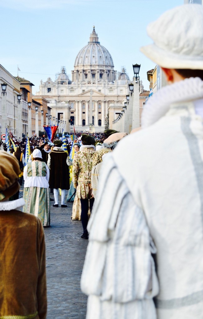 Quello andato in scena nella Capitale è un evento internazionale storico e folcloristico che ha visto la partecipazione di oltre 1300 figuranti provenienti da ogni dove che hanno accompagnato i Re Magi portatori di tre doni simbolici a Papa Francesco.