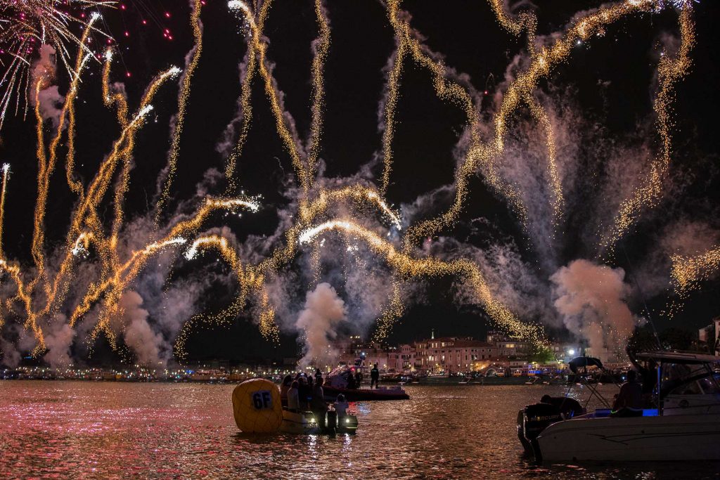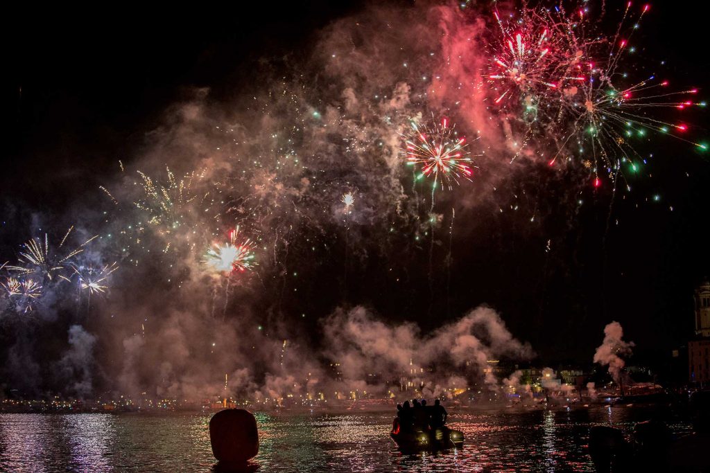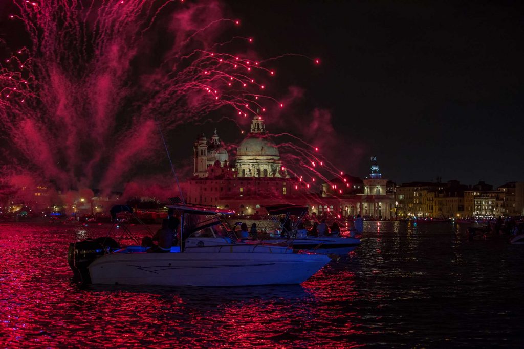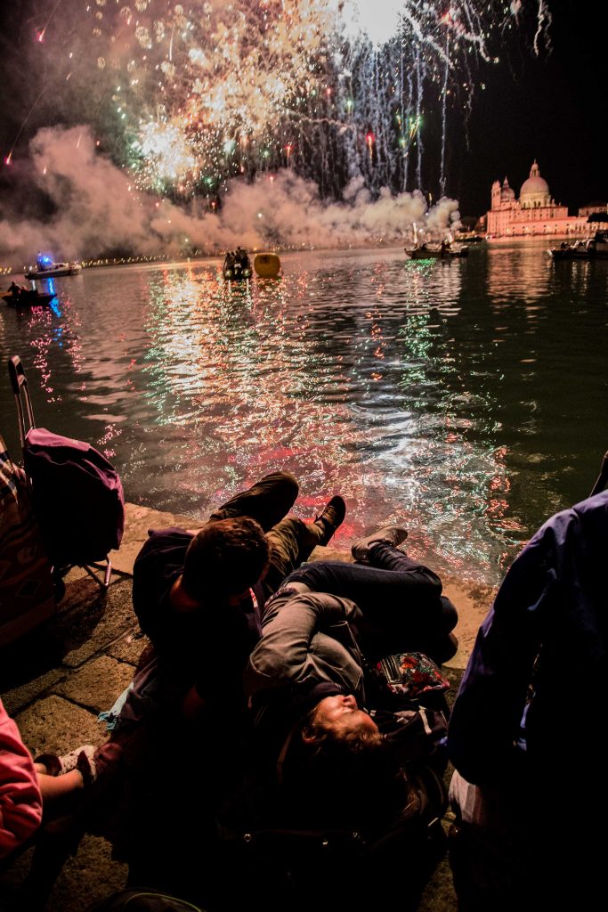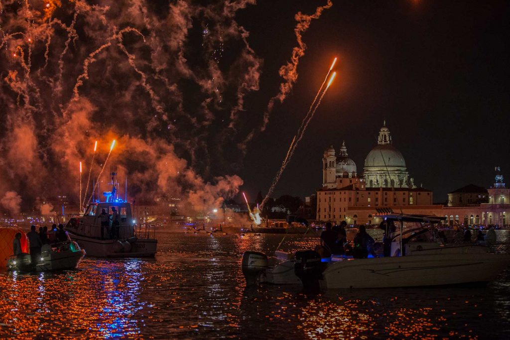 Il bacino San Marco si riempie di barche, si attende la notte con i fuochi d’artificio più sontuosi che abbiate mai visto. La fotografa Laure è belga, ma per l’occasione prepara una cena in barca da autentica veneziana. Poi c’è la pioggia, qualche attimo di trepidazione, infine si sbarca sul sagrato di San Giorgio Maggiore e per quaranta minuti si scatta a raffica per catturare la luce, i colori, la meraviglia di una notte indimenticabile. Questa è Venezia. Roba da sentimentali? Lo dite voi.