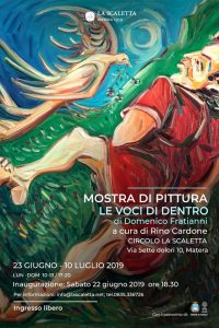 Sarà inaugurata sabato 22 giugno 2019, alle ore 18,30, al Circolo ‘La Scaletta’ di Matera la mostra dell’artista molisano Domenico Fratianni, dal tema ‘Le voci di dentro’.
