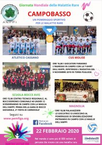 L’ANPPI, attraverso lo sport, abbinerà il lungo pomeriggio sportivo del capoluogo molisano alla sensibilizzazione delle malattie rare, pubblicizzando il Progetto Networkcare.