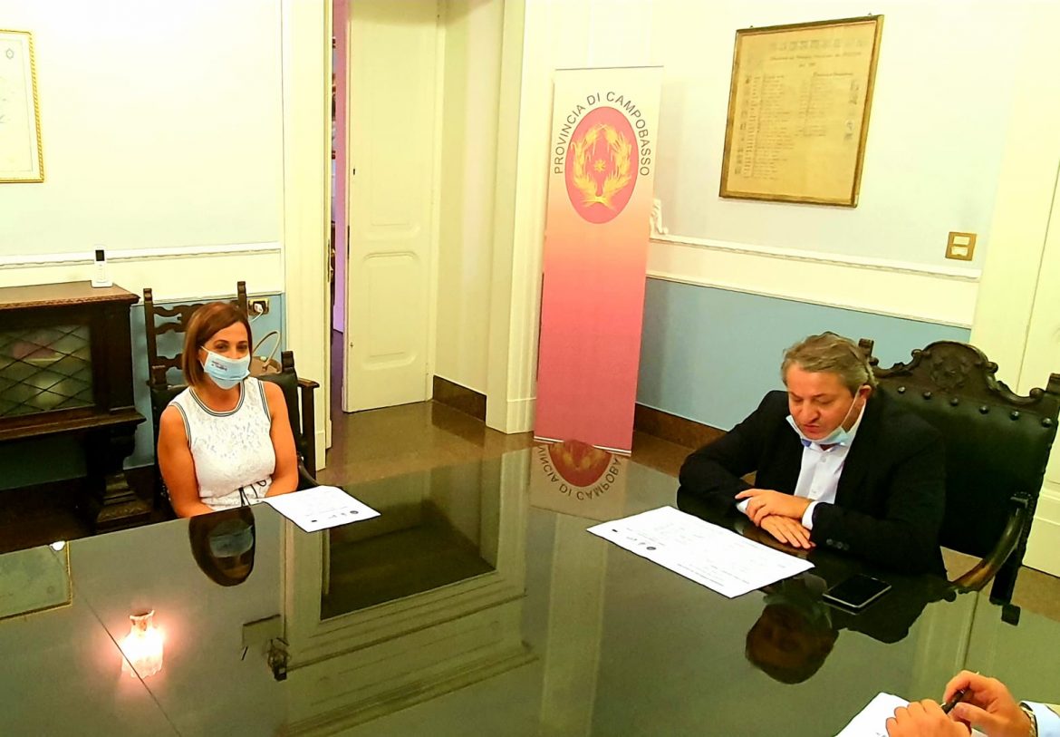 A Palazzo Magno presenti, oltre al Presidente della Provincia di Campobasso, Francesco Roberti, i consiglieri Alessandro Amoroso, Alessandro Pascale, Simona Valente, Angelo Del Gesso, il dirigente Angelo Fratangelo, la consigliera di parità Giuditta Lembo e la responsabile dello Sportello Europe Direct Molise, Carmela Basile.