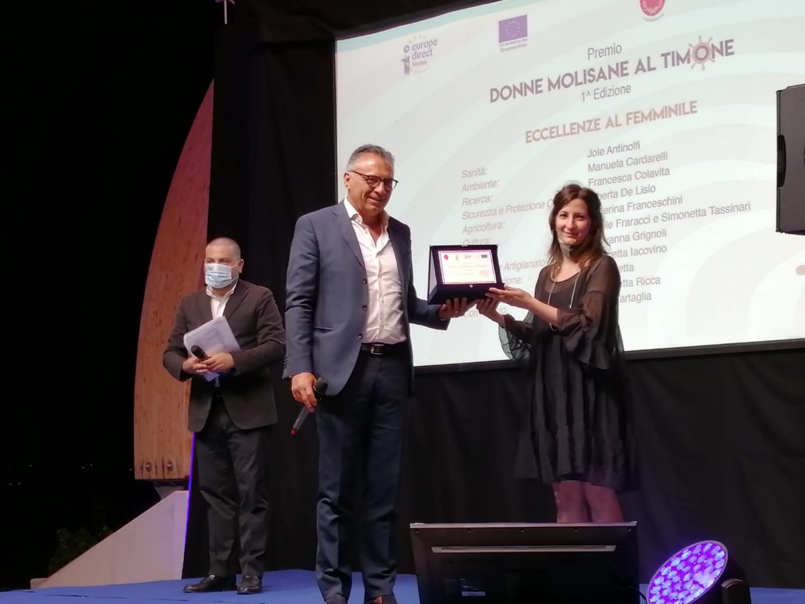 Un riconoscimento è stato consegnato a uomini e donne per il marcato impegno durante l’emergenza Covid-19 nel campo della sanità, istruzione e volontariato: Anna Paola Sabatini (Direttrice USR Molise), Carolina De Vincenzo (Presidente Ordine dei Medici e degli Odontoiatri della Provincia di Campobasso), Mariacristina Magnocavallo (Presidente dell’Ordine delle Professioni Infermieristiche delle Province di Campobasso e Isernia), Gian Franco Massaro (Presidente CSV Molise) e Francesca Colavita (ricercatrice dello Spallanzani di Roma).